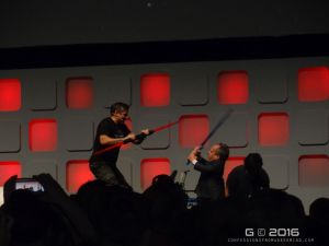 Ray Park and Warwick Davis recreate the Jedi and Sith fight from The Phantom Menace