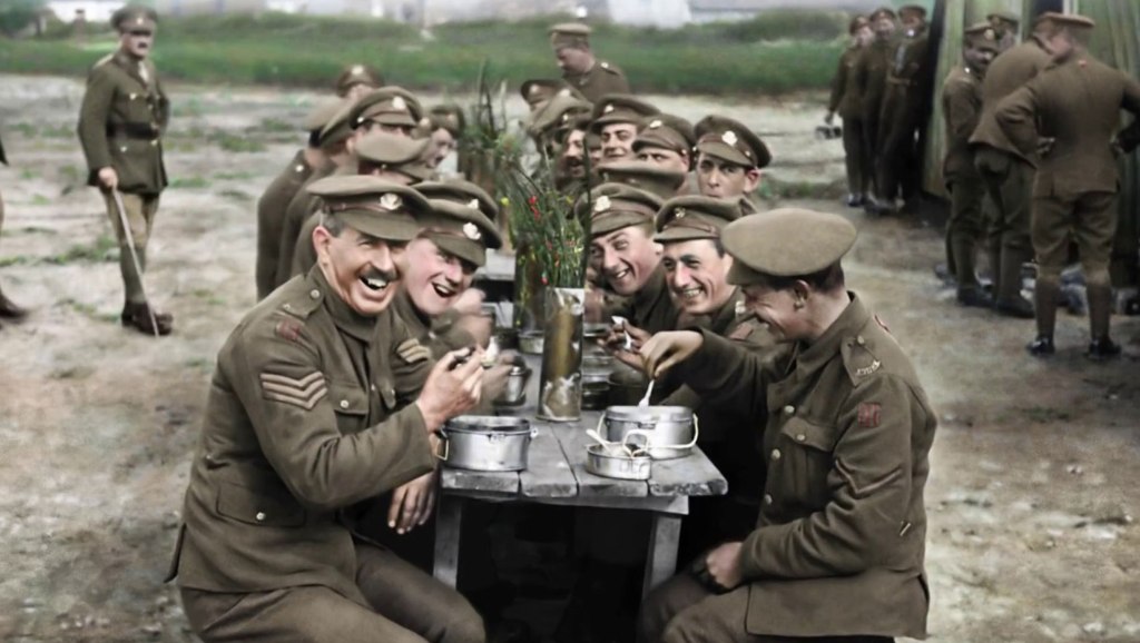They Shall Not Grow Old diversifies itself by not following the traditional format of documentaries. It’s not concerned by the political conflicts or alliances that shaped Europe in 1914, nor is it concerned with the how and why the war started. It doesn’t have a ‘famous actor’ to drive its creditability such as Laurence Olivier in The World at War series. Instead, Jackson takes an inward perspective, relying on a clear motivation in its direction. Dedicated to his Grandfather, They Shall Not Grow Old is a personal and explorative journey of the First World War. Similar to Christopher Nolan’s Dunkirk (specifically its narrative theme and technique), this is a celebration dedicated to the soldiers.